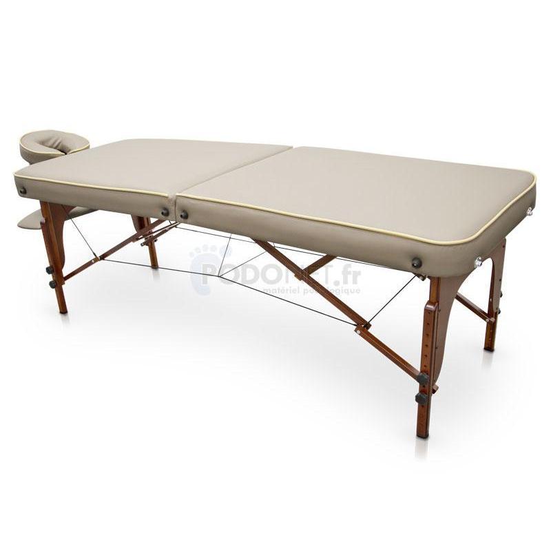 table de massage pliante EASY Bois , présentant un design raffiné et des finitions d’une qualité exceptionnelle. Elle est disponible en plusieurs couleurs. Sa structure, de grande stabilité et résistance, est en bois vernis de ton marron qui lui donne un aspect élégant et Zen.