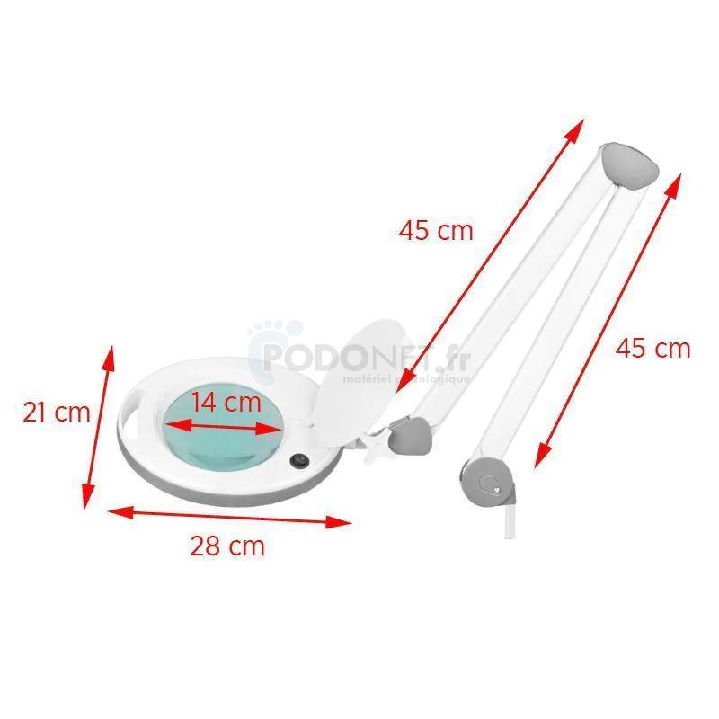 Cette lampe se caractérise par une très faible consommation d'énergie et des ampoules LED longue durée (environ 4 000 heures). Elle permet d'observer la peau avec un grossissement tout en offrant un excellent éclairage.